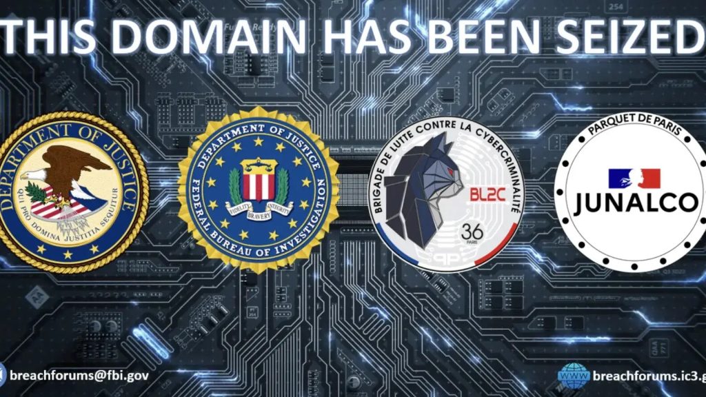 Hiện tại, khi truy cập tên miền breachforums[.]hn, người dùng sẽ thấy thông báo tịch thu chung. Thông báo này được công bố bởi Bộ Tư pháp Hoa Kỳ (DOJ), Cục Điều tra Liên bang (FBI), cùng với các cơ quan chức năng của Pháp bao gồm Lữ đoàn Chống Tội phạm Mạng (BL2C) và Văn phòng Công tố Paris (JUNALCO).