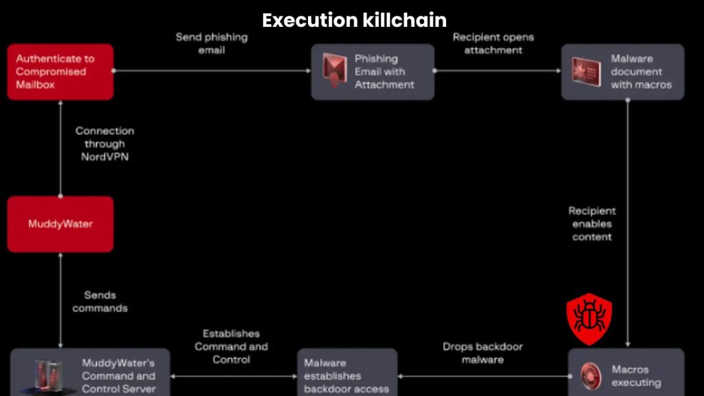 MuddyWater đã khởi động hoạt động bằng cách truy cập một hộp thư bị xâm nhập thông qua NordVPN. Đây là một dịch vụ hợp pháp, bị nhóm tấn công lợi dụng để che giấu danh tính và làm xáo trộn nguồn gốc các hoạt động độc hại của họ.