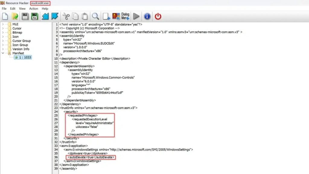 Điểm yếu của ứng dụng bắt nguồn từ hai yếu tố quan trọng trong siêu dữ liệu manifest của nó. Yếu tố đầu tiên là thẻ <requestedExecutionLevel level="requireAdministrator" />, chỉ thị cho Windows tự động chạy tệp nhị phân với đầy đủ quyền quản trị.