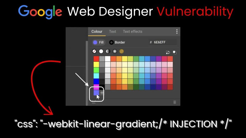 Bằng cách tạo một quy tắc CSS độc hại – cụ thể là một hàm background:url() trỏ đến REST API nội bộ của Google Web Designer (ninja-shell) – kẻ tấn công có thể kích hoạt các lệnh gọi API không mong muốn khi người dùng mở công cụ chọn màu Swatches.