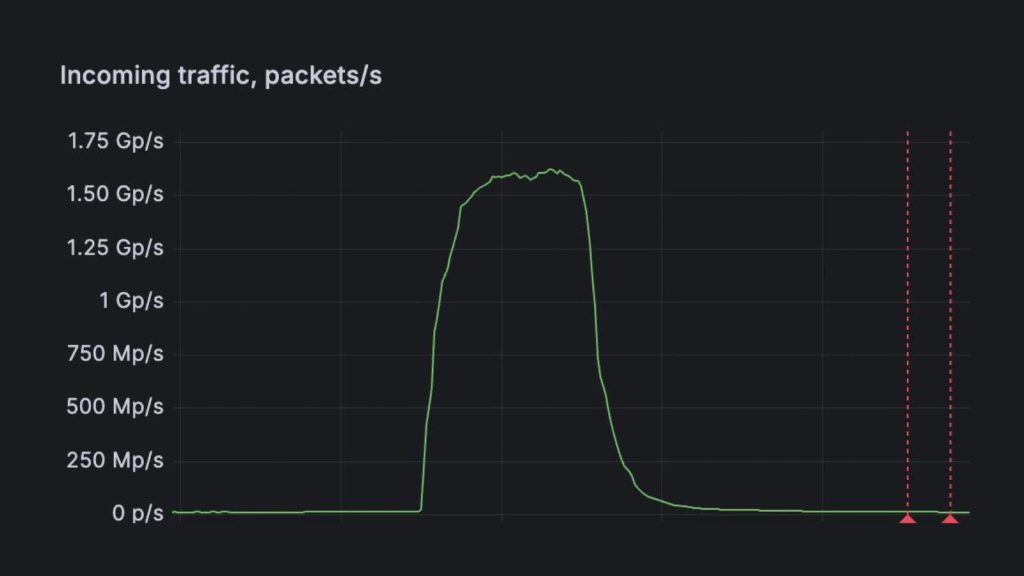 Cuộc tấn công này đạt mức cao nhất là 1,5 tỷ gói tin mỗi giây (1.5 Gpps), một trong những trận lũ gói tin có tốc độ cao nhất từng được công khai. Con số này không chỉ gây sốc về mặt thống kê mà còn là một thách thức lớn đối với bất kỳ hạ tầng mạng nào.